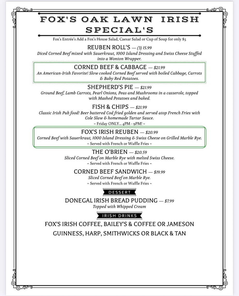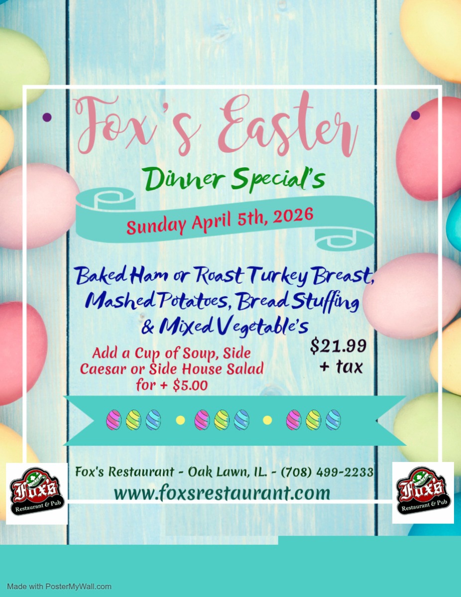 Back in 1964, when times were simpler and the South Side of Chicago was booming, a young Irish couple, with a special pizza recipe and a whole lot of heart, opened the doors to the now famous Fox’s Restaurant & Pub. For Thomas and Therese Fox, creating a pizza recipe wasn’t hard, it was something they knew all too well. Creating a fun Pub for the strong Irish culture was what they had in mind when they first opened in Beverly a Chicago neighborhood and now it has spread to Oak Lawn, and beyond. The Irish Pub has stayed in the family as Tom Fox Jr. now spreads the charm all across the South Side, making families happy and filling them up with our old style pizza recipe, and our new style food selection.